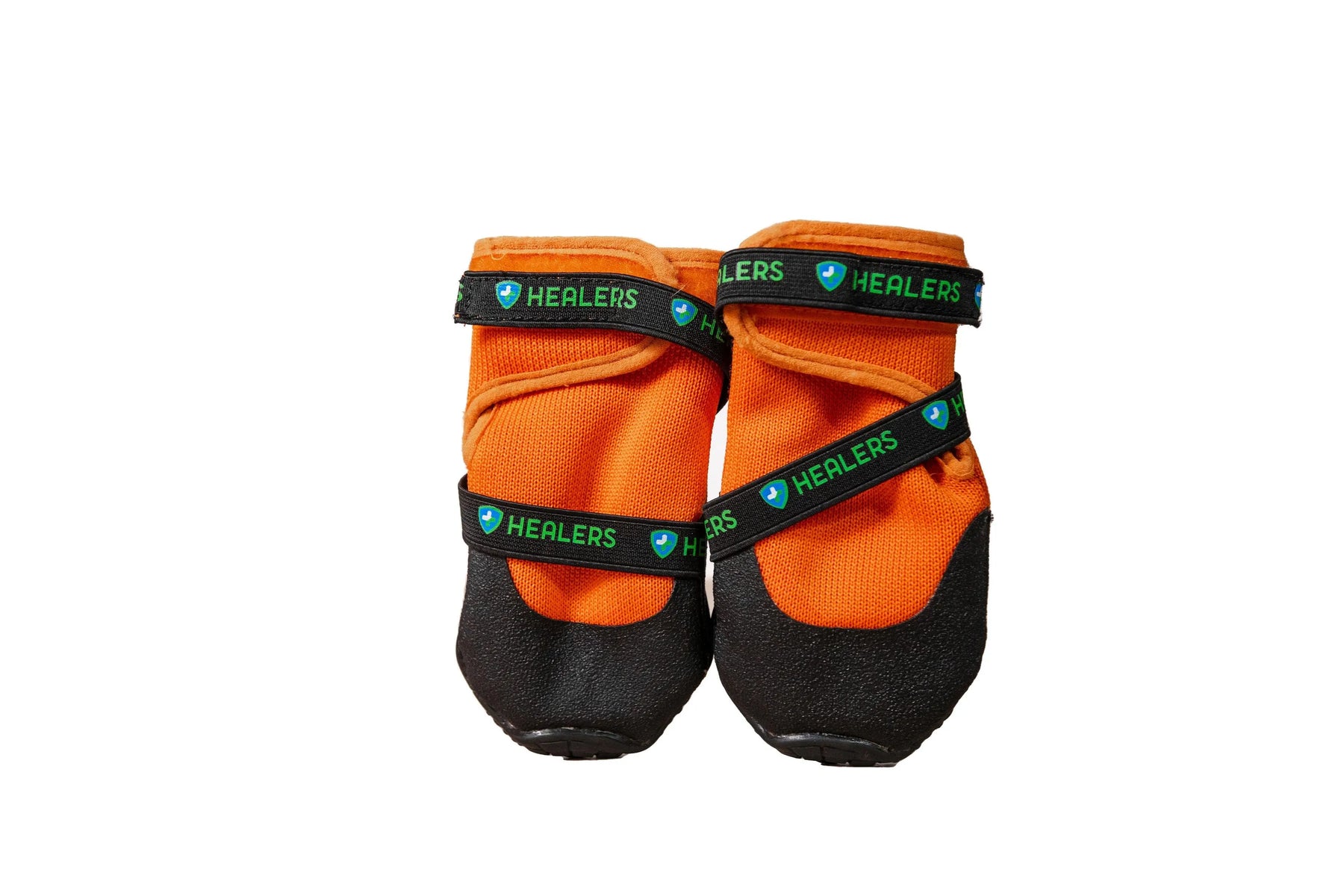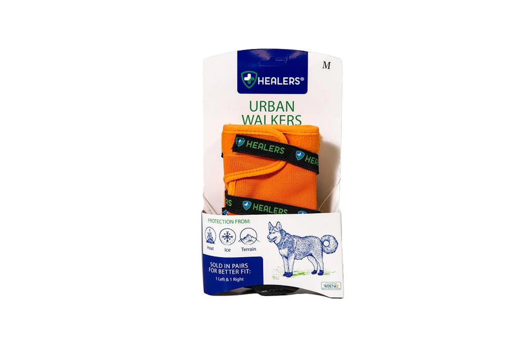 If your dog is prone to paw injuries while adventuring outside, the Healers Petcare Urban Walker Booties are the ideal solution for you. Described by our local veterinarian as oethe best boot weve ever seen, these booties are the obvious choice for dog paw care. Created with comfort, quality, and effectiveness in mind, these booties provide the ultimate protection for your pets paws. Secured with high tensile strength Velcro, these booties are sure to stay on your pups feet no matter how much they run. These booties also feature a reflective band for greater visibility at night. With non-skid soles, these booties provide ultimate traction both indoors and out.